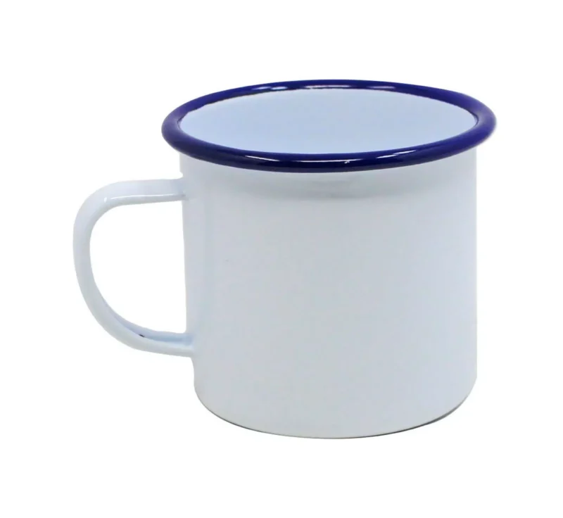 Falcon Housewares Traditional Retro Classic Enamel Mug White and Blue Trim 1/2pt0.28lt
