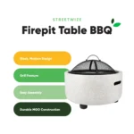 - FIRE PIT WITH BBQ GRILL: Unleash your inner grill master with the integrated BBQ grill feature. Grill up your favourite meats, vegetables, and more, all while enjoying the cosy warmth of a crackling fire.