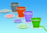 PLS Collapsible Cup 240ml – Pack of 4 HW3000. Mixed Colours. Silicone Cups come with a Plastic lid and hanging rope.