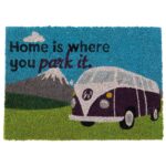 Heavy Duty Coir Home is Where You Park It (Camper Van) Mat C0052N . A high quality, heavy duty indoor and outdoor mat with an attractive, bright caravan sweet caravan design. The top is a heavy duty coir, perfect for out outdoors as well as in and has a non slip heavy duty P.V.C. backing.