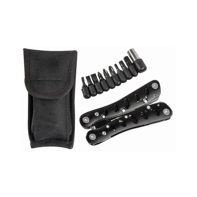 A compact and lightweight multi-functional tool that comes with a 9 piece screw driver socket set that fits in your pocket.