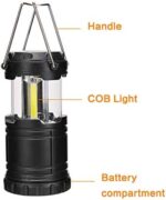 This lantern is manufactured from durable lightweight ABS material with 360° bright white COB bulbs, plus sturdy metal handles for carrying or hanging.