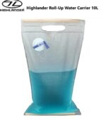 Highlander Roll-Up Water Carrier 10L Camping Backpacking Collapsible PVC CP014. Highlander Roll-Up Water Carrier 10L Camping Backpacking Collapsible PVC CP014. The Highlander roll-up water carrier has a 10L capacity and is made from translucent non-toxic PVC. It has been fitted with a wooden handle for easier carrying or hanging. The non-leak tap allows uncomplicated use and water flow.