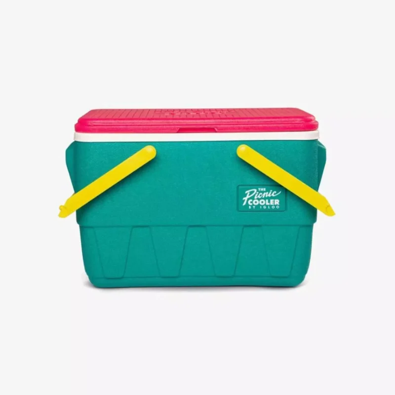 Igloo 25qt – 23lt Retro Picnic Basket Cooler Cool Box Insulated Molded Side Handles.  Originally released in 1992, our Retro Collection Picnic Basket makes a statement from the beach to the festival