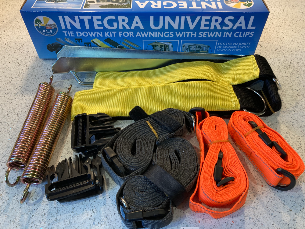 PLS The Integra Universal Awning Tie Down Kit now has more clip combinations so it will fit a larger number of awnings with sewn in clips.