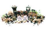 Toy soldiers, Sand bags, Tanks, Jeeps, Trees, Barrels, Planes,