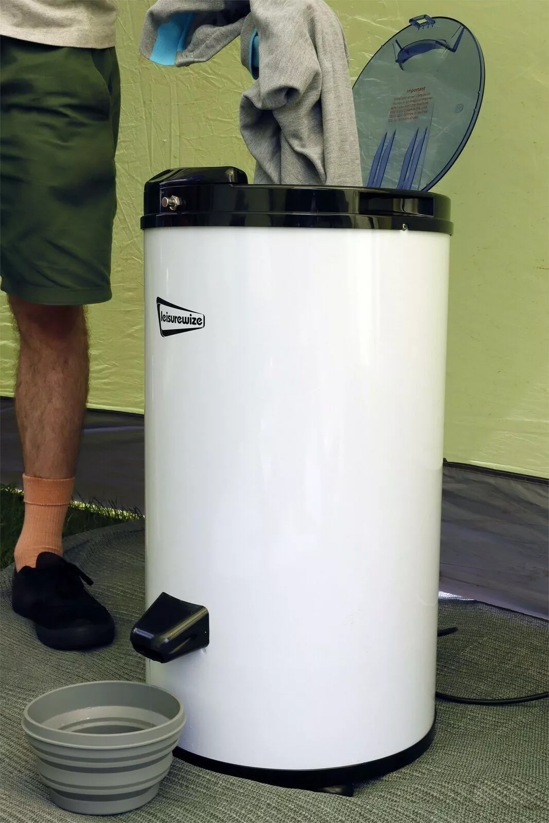 This portable, super efficient & low wattage spin dryer from Leisurewize is perfect for caravan holiday makers, motorhome users & campervan owners. It’s also perfect for use at home in case of emergencies.