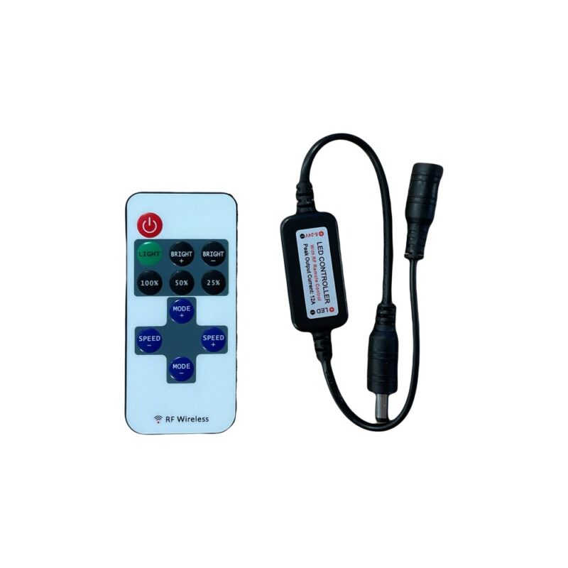 This product has a one touch ON/OFF or remote control, can adjust the brightness.