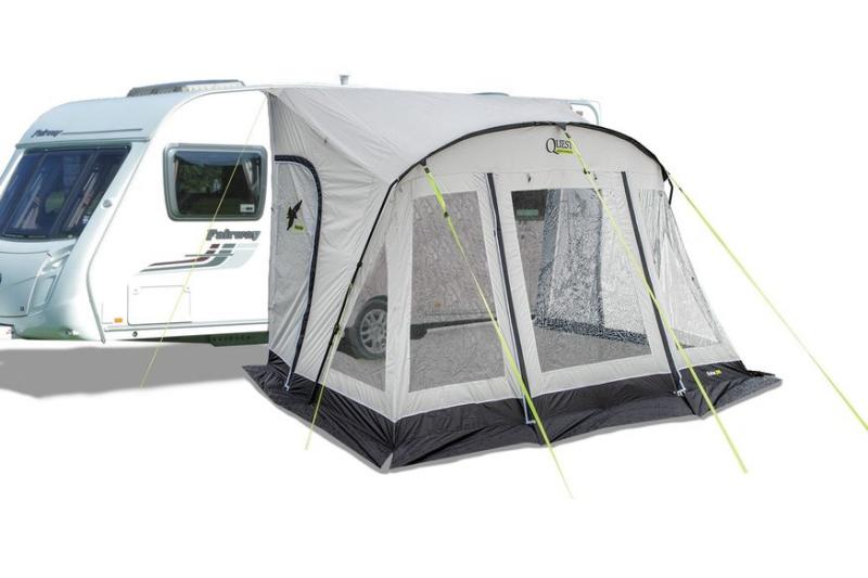 The awning is all about ease of use and value. It features an easy to use, minimal quick-fit pole system. This pole system is quick to put together, lightweight and adjustable to help ensure the best pitching even on uneven ground. The pitching is easy enough to be done by a single person if required. It uses the modern Quest Tec 75 fabric which is lightweight, quick drying and extremely waterproof making the awning easier to use and maintain. It is U.V. coated to help protect it from the harmful UV rays which helps extend its lifespan and gives you a U.P.F. rating of 50+ which is the highest possible giving you complete protection.