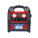 Includes rechargeable 15Ah battery and two analogue displays for measuring air pressure and battery charge level.