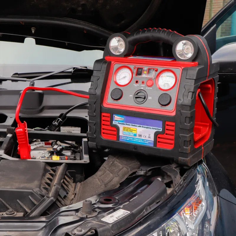 A portable 6-in-1 12V power station that is able to emergency jump start petrol engines up to 2500cc & diesel engines up to 2000cc.