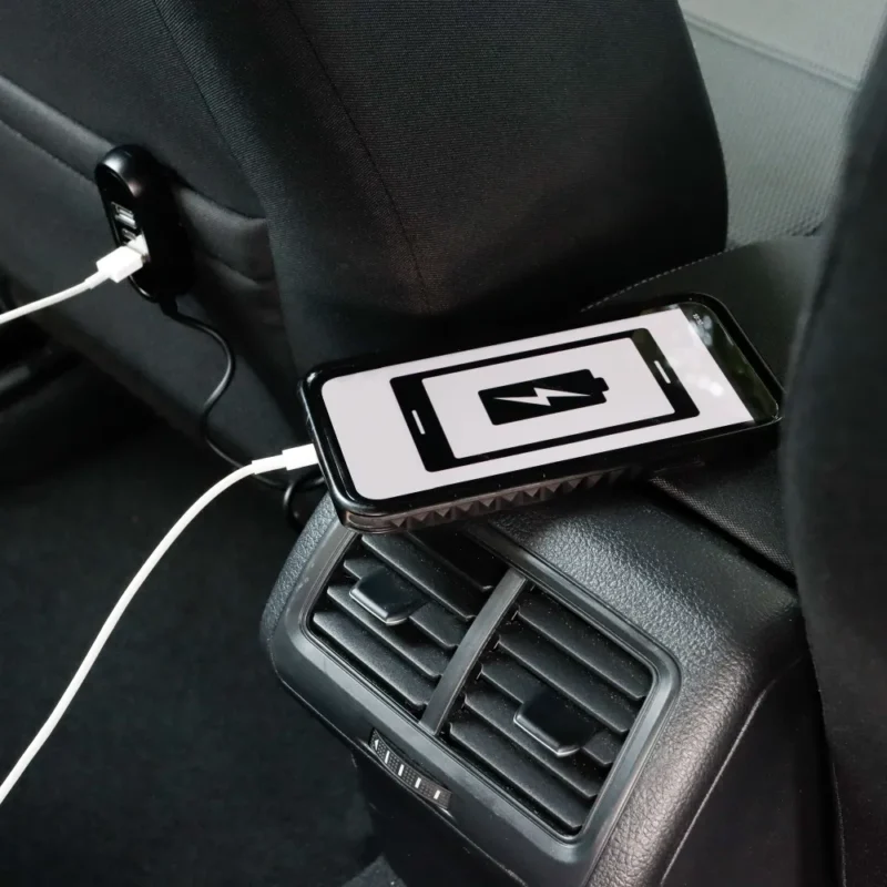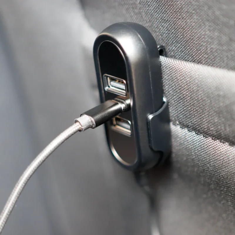- Back seat charger with clip: 2 USB ports & 1 Type C port