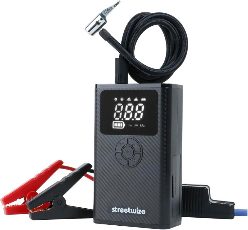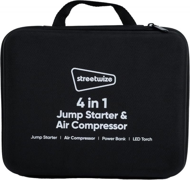 Never get stranded again! For car emergencies and everyday needs, the Streetwize 4-in-1 Jump Starter and Air Compressor is your all-in-one solution. This compact and powerful device can jump start your car, inflate tyres, charge your phone, and light your way.
