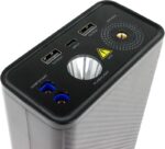 The device features a 10,400 mAh battery that allows for multiple jumps and inflations. two USB ports to charge devices. The torch is bright and features both SOS and strobe modes. It is lightweight and can easily fit into your glove compartment. It also comes with a carrying case for convenient storage and travel.