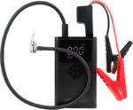 The air compressor is built-in and has a maximum pressure of 120 PSI. It includes adapters for a variety of vehicles, including cars, bikes, balls, and more. The digital display indicates pressure and allows for pre-sets.
