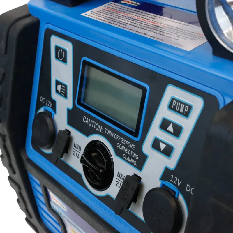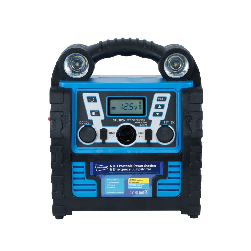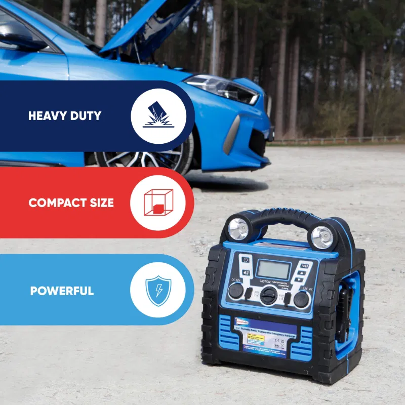 A portable 6-in-1 12V power station that is able to emergency jump start petrol vehicles up to 2500cc and diesel vehicles up to 2000cc.