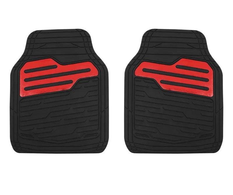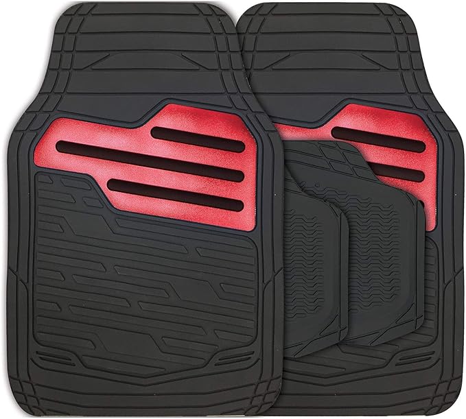 This heavy-duty rubber mat set provides durable protection for your vehicle’s interior, with a bold red “metallic” heel pad for added style and durability.