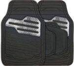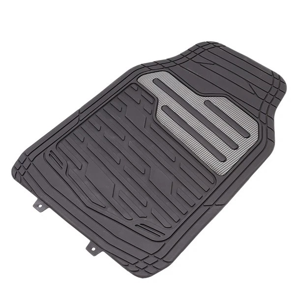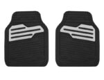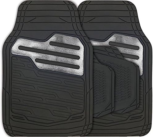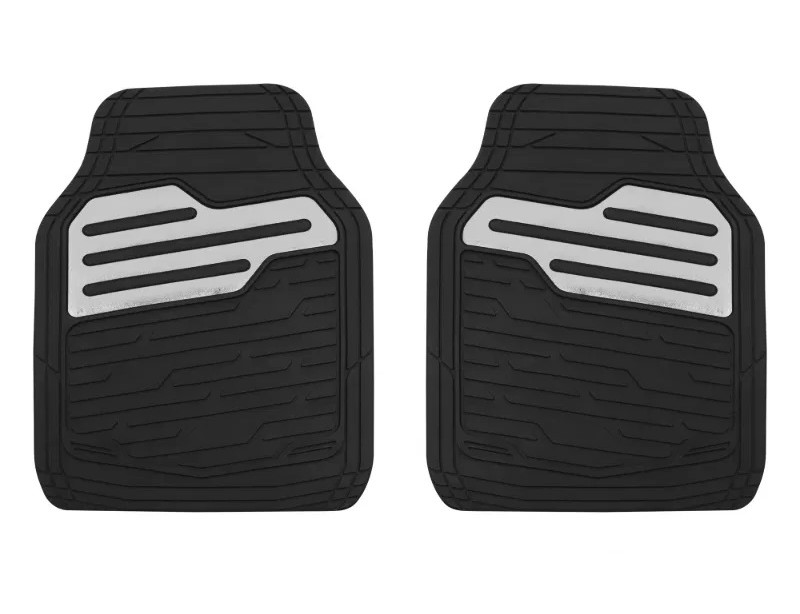 This heavy-duty rubber mat set features a sleek “metallic” carbon-look heel pad for added durability and style. Designed to protect your vehicle’s flooring from everyday wear and debris, these mats are both practical and easy to maintain.
