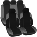 The set includes 2 front passenger seat covers, rear seat cover with zips for 50-50 or 60-40 split rears, and 5 headrest covers.