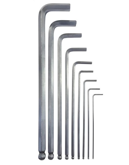 A durable and versatile hex key set made from tough chrome vanadium steel, ideal for both DIY and professional use. Each key features a ball-point tip on the longer end for improved access in tight or angled spaces.