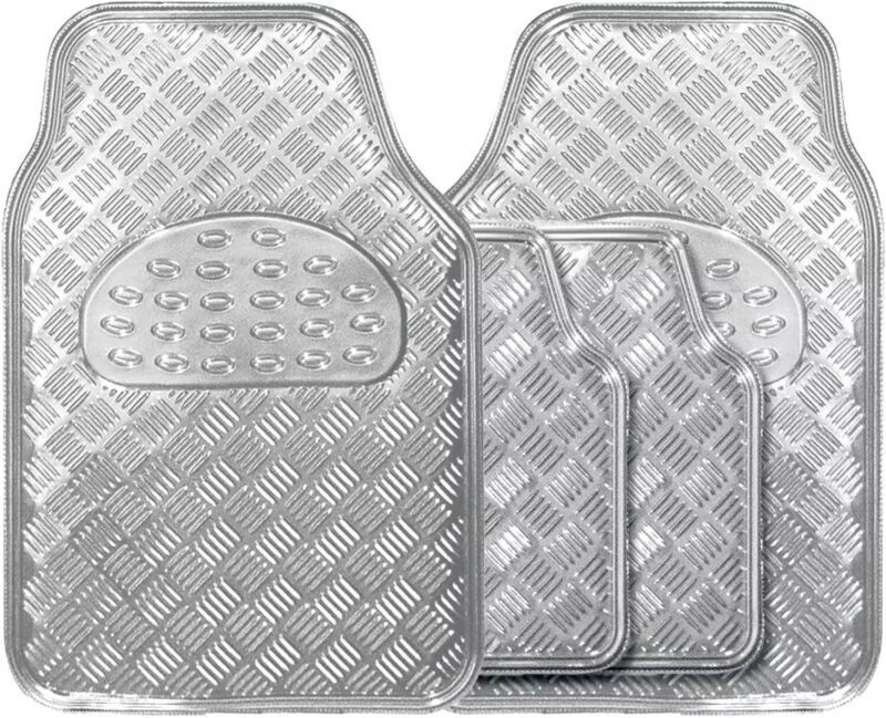 Streetwize Chrome Checker Plate Rubber Floor Mat Set SWUXM1