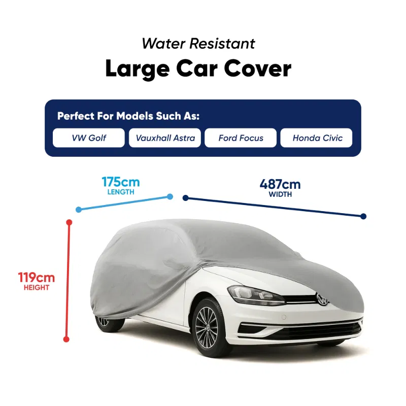 Comes in a large size and will fit most large sized cars such as a Audi A3, VW Passat and more. Supplied with a handy storage bag.