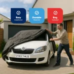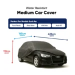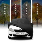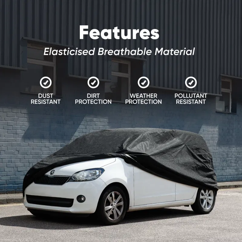 A water-resistant car cover that comes with an elasticised fit. Made from a breathable material, the cover prevents moisture build up from inside the cover.