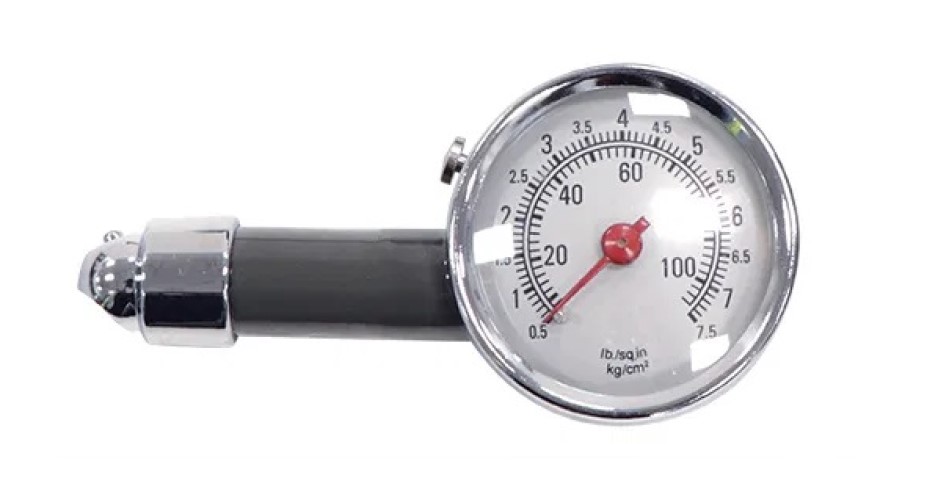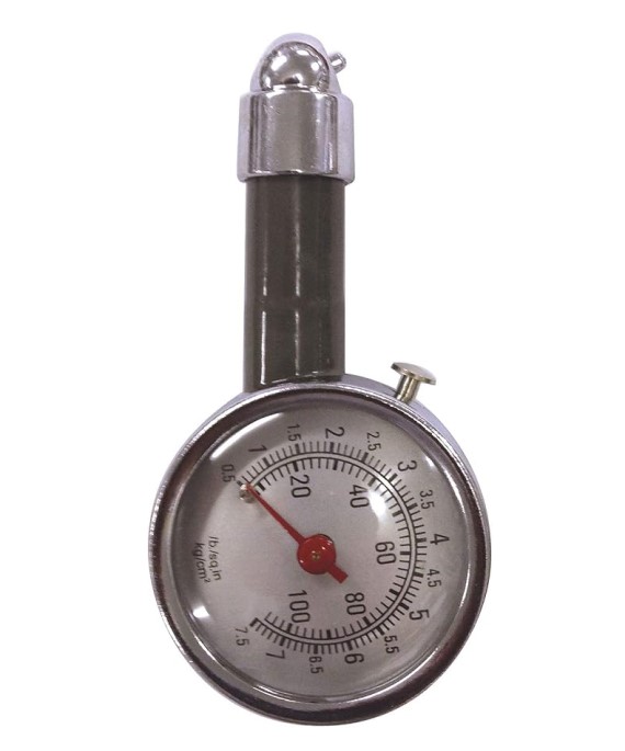 A handy portable tool for measuring the pressure of tyres to ensure they are properly inflated for fuel economy. With its analogue dial, users can get pressure reading of up 40 psi.