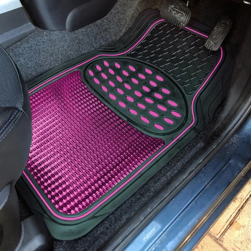 Streetwize Revelation Black & Metallic Pink Heavy Duty Rubber Interior Car Mats SWTP7