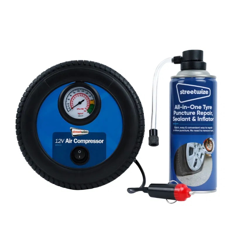 Streetwize Tyre Sealer Kit With 12v Air Compressor Emergency Puncture Repair SWCHEM9