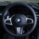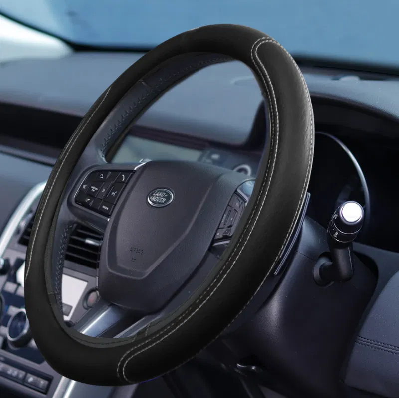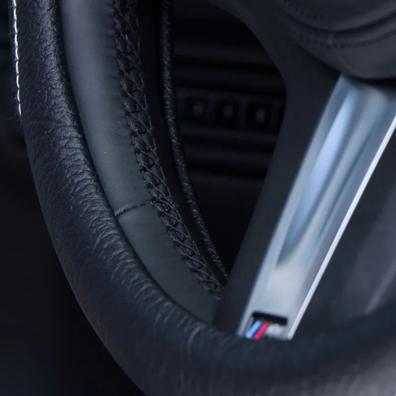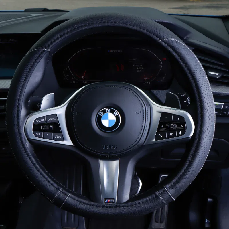 This steering wheel glove provides protection from wear and tear while enhancing the interior of the vehicle, thanks to its matt black with white stitching finish to give it that luxury look.