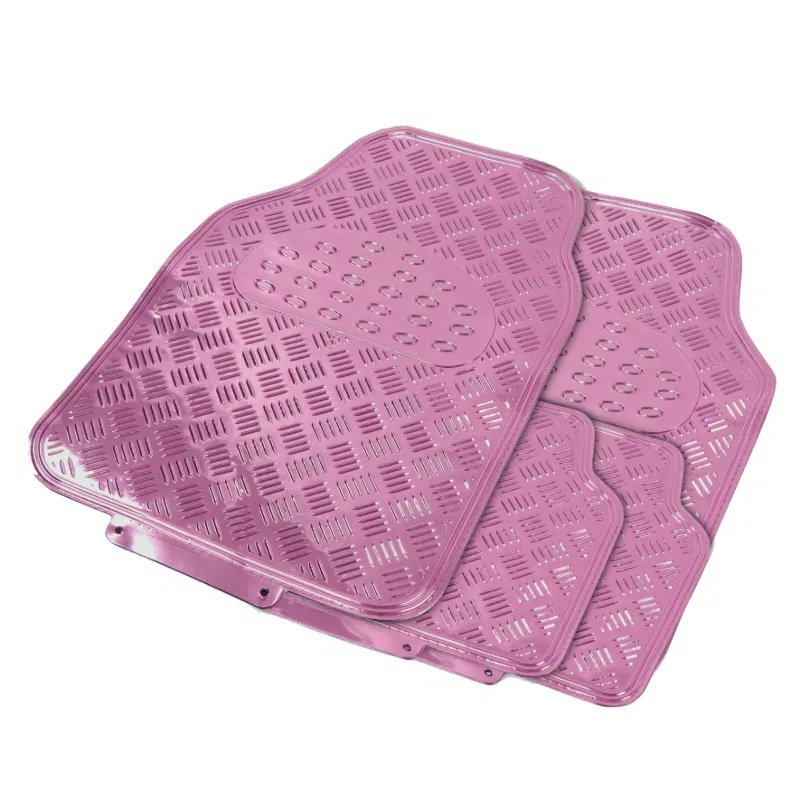 4 Piece Heavy Duty Metallic Check Plate Style Mat Set in Pink