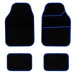 Streetwize Velour Black Carpet Car Floor Mats Heel Pad Blue Edge Trim SWBCMBL