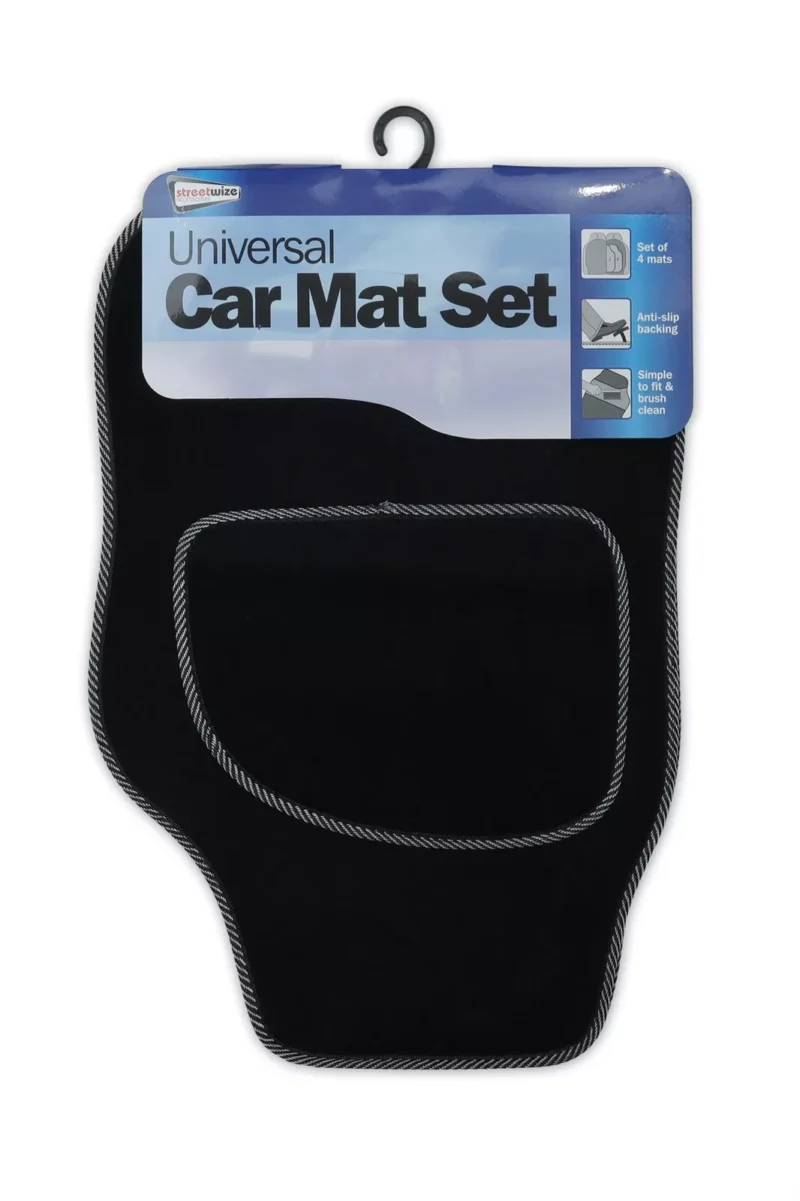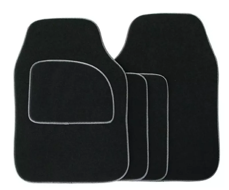 Streetwize Velour Black Carpet Car Mats Heel Pad Grey Binding Edge Trim SWCM31