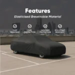 A water-resistant car cover that comes with an elasticised fit. Made from a breathable material, the cover prevents moisture build up from inside the cover.