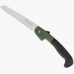 A large folding saw with jagged edge for cutting green and dead wood with ease.
